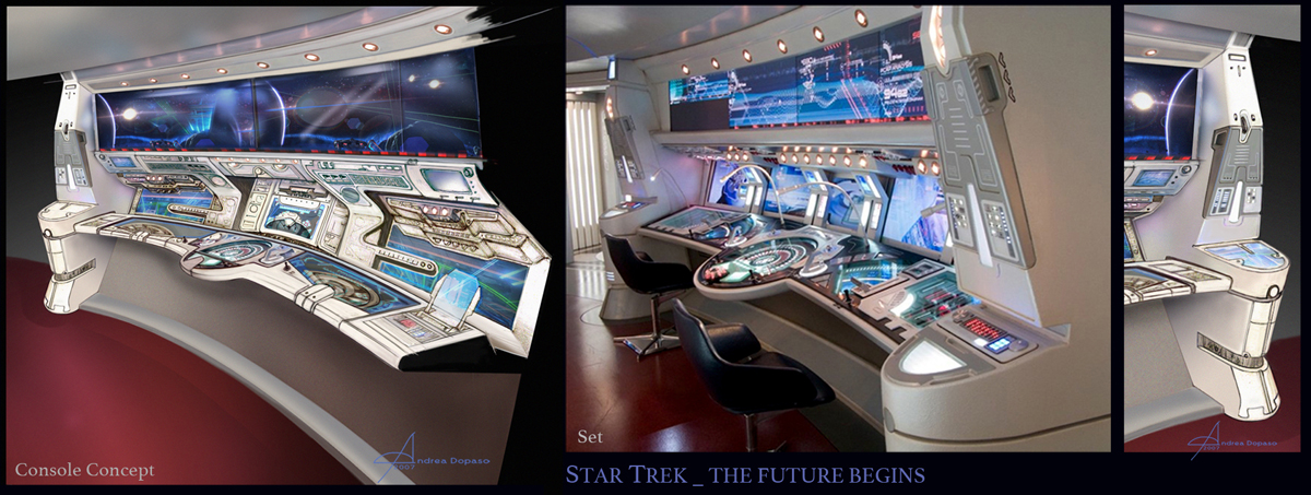 Working in “Star Trek, The Future Begins” was one awesome experience!. I have the once in a life time opportunity to be part of the team designing the “Enterprise” interior new look. J.J. Abrams and Scott Chambliss, the production designer extraordinaire, were looking for a specific unknown design to fit a complicated time period. This movie was actually a prequel, back when Kirk becomes a star fleet officer, so we couldn't go very high tech or more technologically advanced than the "future" Enterprise, with the risk of falling into a very simple and dated ship, since we still needed to reflect a sophisticated technology.