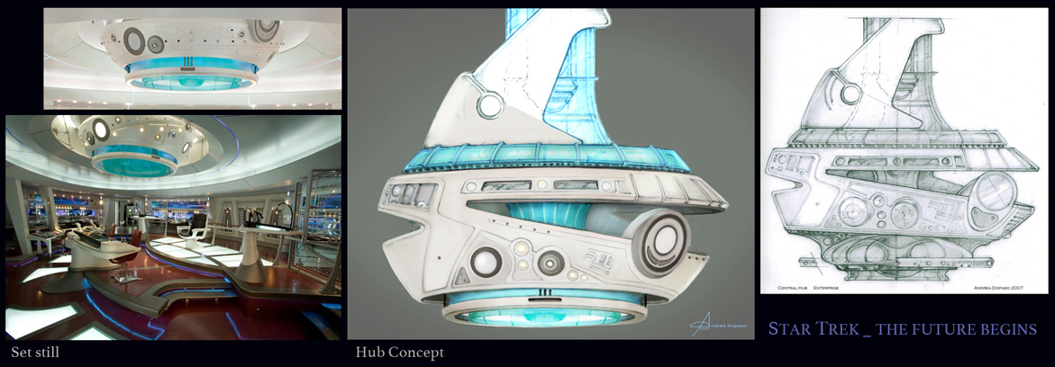 Working in “Star Trek, The Future Begins” was one awesome experience!. I have the once in a life time opportunity to be part of the team designing the “Enterprise” interior new look.  J.J. Abrams and Scott Chambliss, the production designer extraordinaire, were looking for a specific unknown design to fit a complicated time period. This movie was actually a prequel, back when Kirk becomes a star fleet officer, so we couldn't go very high tech or more technologically advanced than the "future" Enterprise, with the risk of falling into a very simple and dated ship, since we still needed to reflect a sophisticated technology.